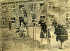 Wesoło i pogodnie jest również na placu przed Liceum, gdzie chłopcy i dziewczęta sadzą młode drzewka, aby w ich cieniu i zieleni dorastały nowe pokolenia młodzieży wiejskiej, świadomej, ambitnej, pełnej zapału i chęci do pracy.