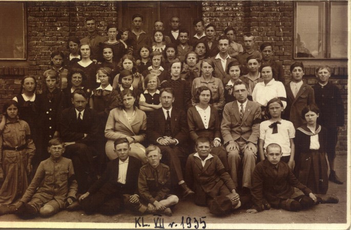 | | Klasa VII szkoły podstawowej w Izbicy w roku 1935. | Wspomniane wyżej wydarzenia opisała Marianna Sachajdak, ówczesna żona Michała: "Dnia 13 kwietnia 1940 r. Niemcy przyszli po męża i zabrali go na posterunek. Tam w ciągu trzech dni bili, ponieważ chcieli dowiedzieć się szczegółów o jego działalności. W tym czasie wskutek denuncjacji sprowadzili tam również Zakrzewskiego, Daroszewskiego, Wojciechowskiego, Zapędowskiego, Rybarczyka, Ranłewicza i wielu innych. Następnie samochodami wywieźli ich do Koła, a stamtąd do Dachau. Po roku otrzymałam wiadomość, że mąż zmarł; później dowiedziałam się, że przyczyną śmierci był zastrzyk"1. Michał Sachajdak został stracony 7 kwietnia 1941 r. w obozie w Mauthausen. Jego prochy zostały pochowane w kwietniu lub początku maja 1941 r. na cmentarzu parafialnym w Izbicy Kujawskiej obok innych AK-owców: Zakrzewskiego i Daroszewskiego.