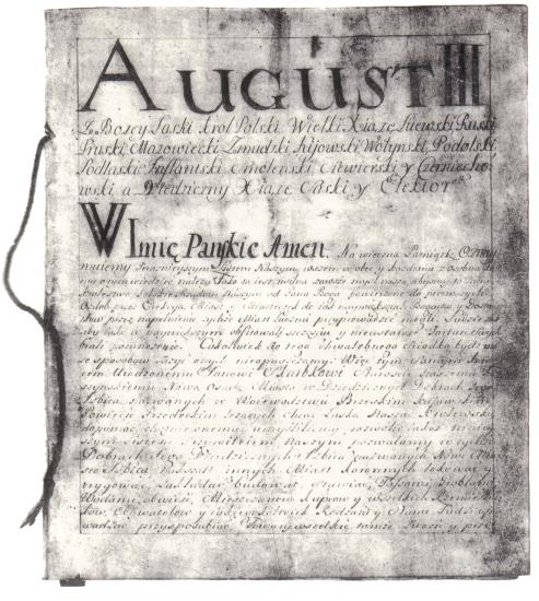 | | Dokument lokacyjny Nowej Izbicy z 1754 r. [źródło: Dorcz K., Izbica Kujawska. Herb Miasta, Izbica Kujawska 1994.] |